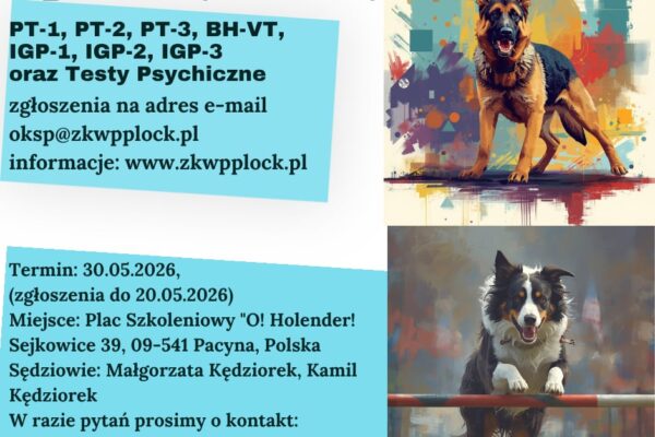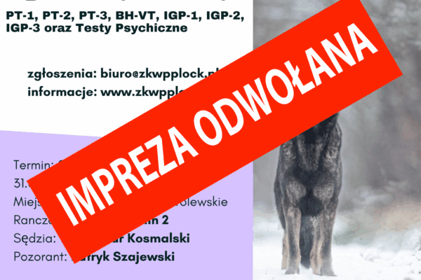 Impreza odwołana. Oddziałowa Komisja Szkolenia Psów zaprasza na testy i egzamin